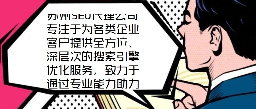 蘇州SEO代理公司以“專業(yè)團隊為基石、個性化服務(wù)為核心、優(yōu)質(zhì)內(nèi)容為引擎、持續(xù)優(yōu)化為保障”的服務(wù)體系,全方位賦能客戶網(wǎng)站提升搜索引擎競爭力,助力企業(yè)在數(shù)字化時代實現(xiàn)品牌曝光與業(yè)務(wù)增長的雙重突破,成為企業(yè)線上發(fā)展的戰(zhàn)略合作伙伴。